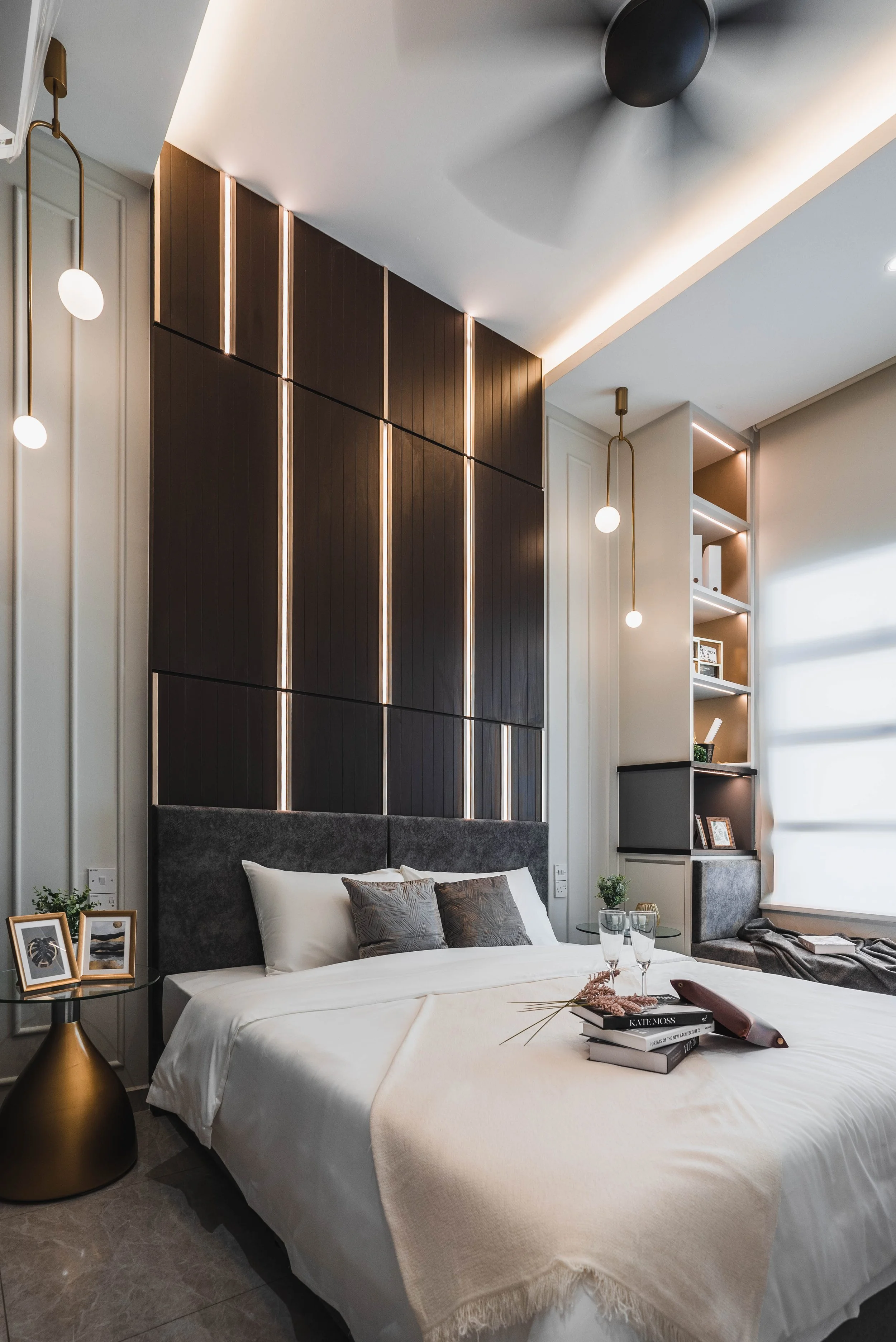 The interior design of the Meru Tropika (P1) showhouse creates a space with an identity yet is neutral enough to showcase different types of furniture and the unique wall panels. The designs are also aimed at boosting productivity while mixing in some residential comforts and hotel-like amenities. The window treatments create warmth and diffuse light, creating an intimate and functional result, with the space fulfilling different needs.
